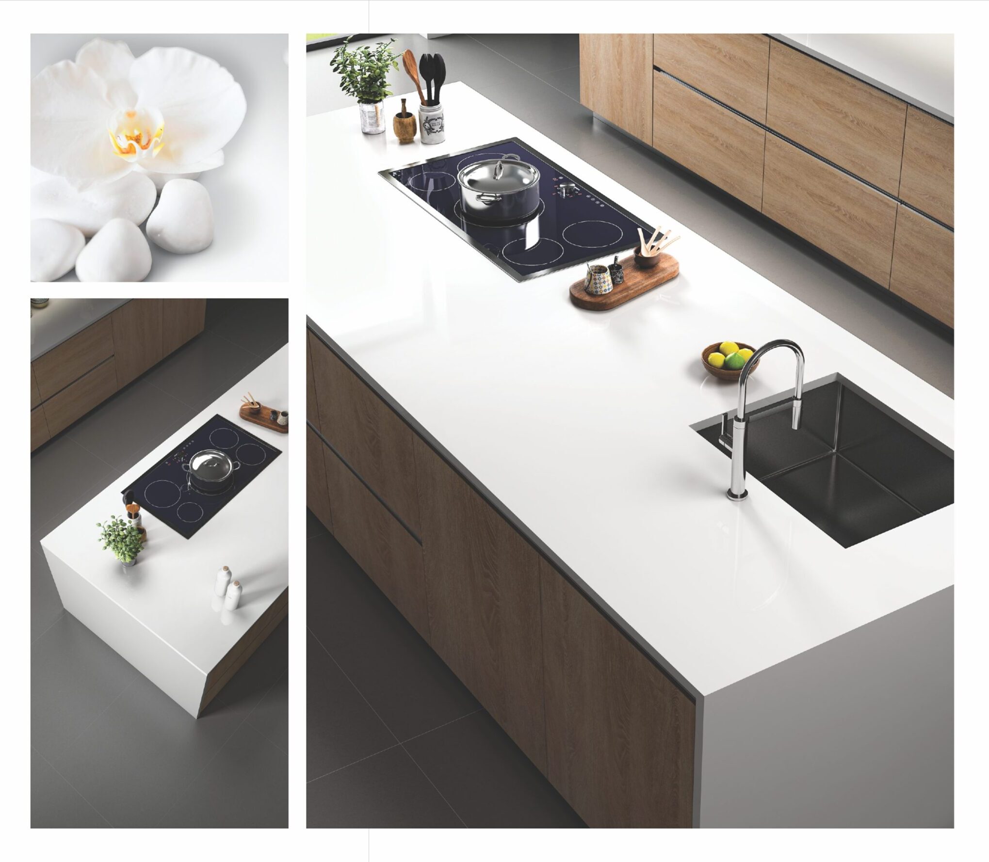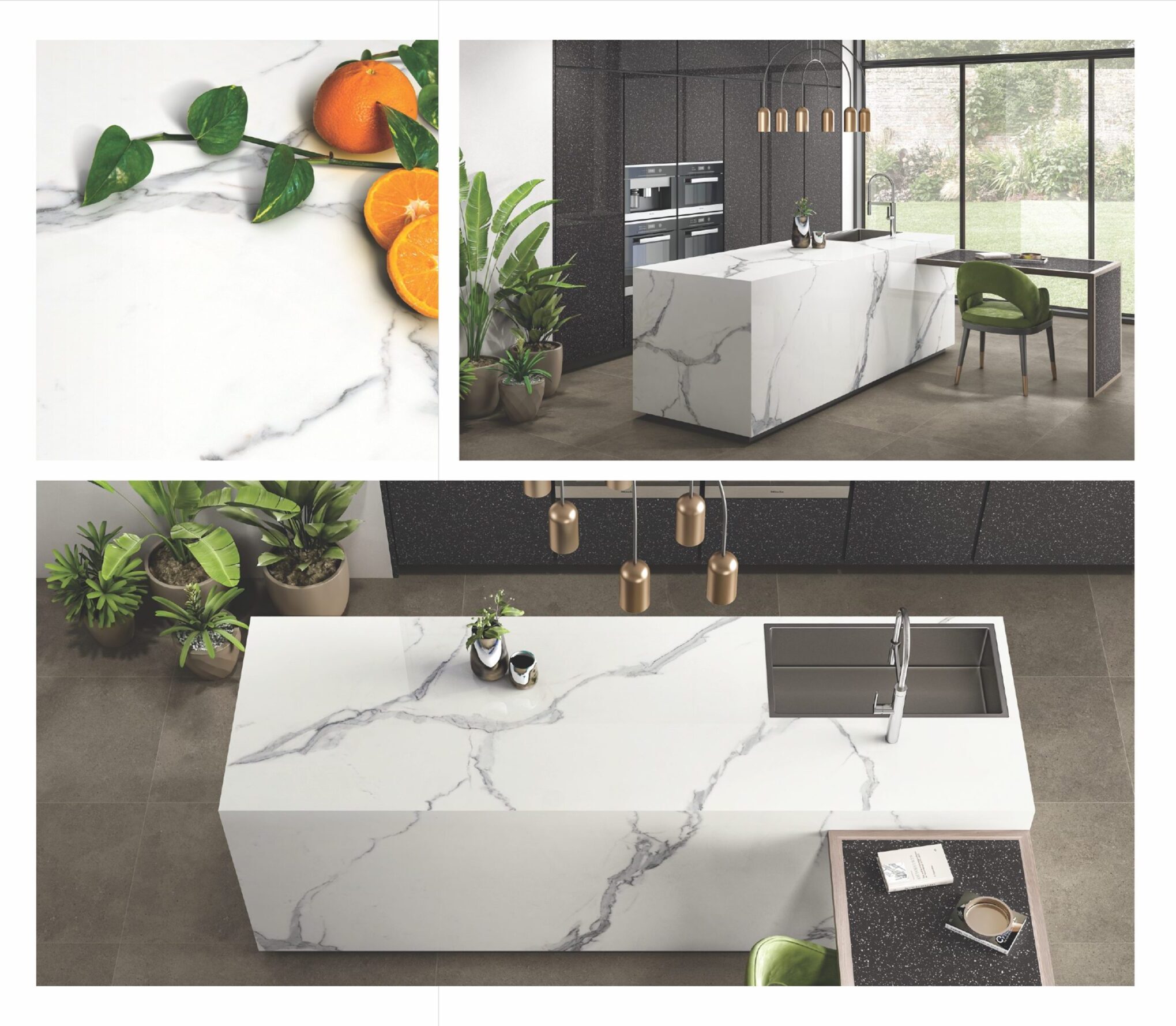 Example: A kitchen with a large, seamless porcelain slab countertop in a marble-like pattern can create a luxurious and elegant ambiance.